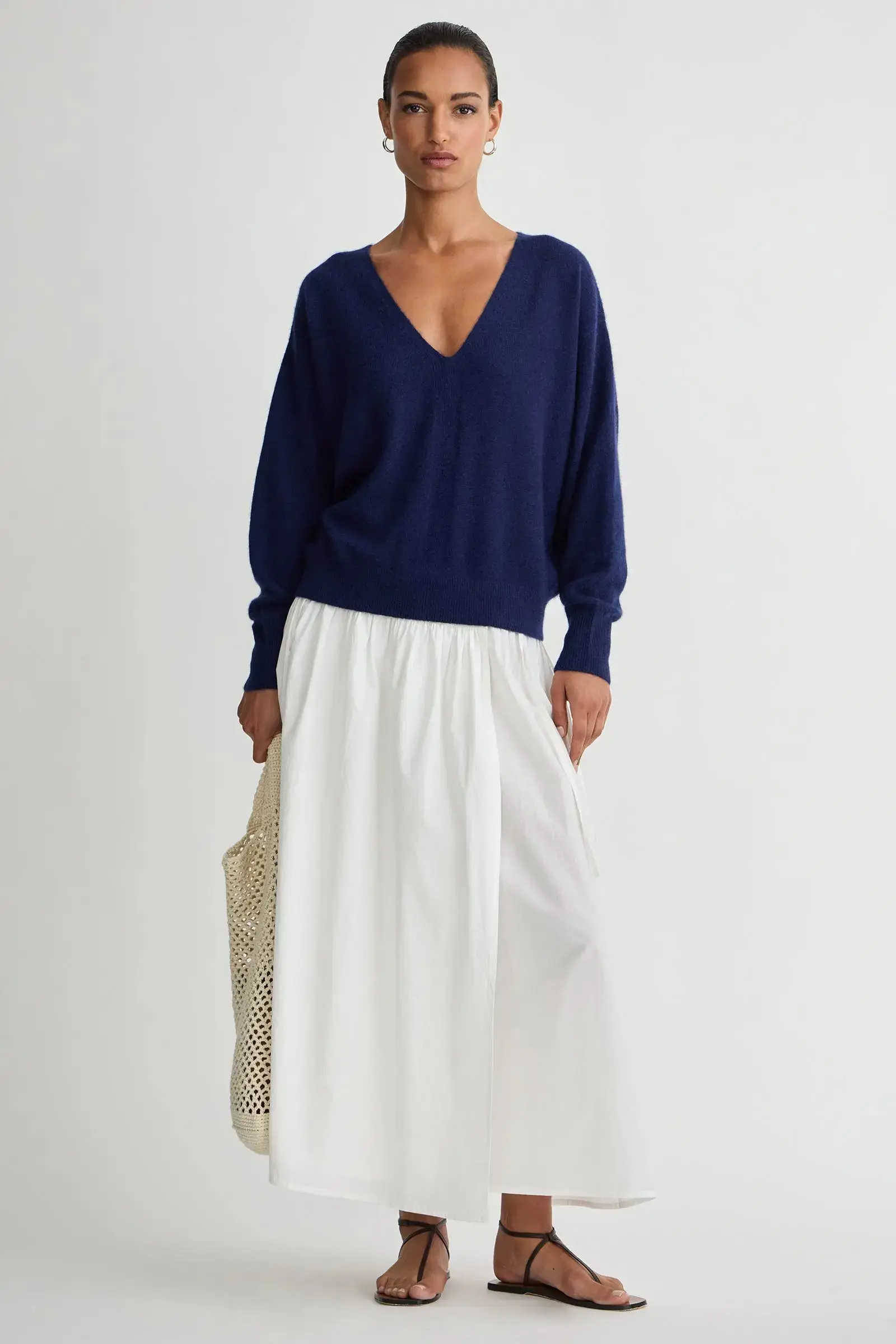 Softest Silk Cashmere V-neck- Eclipse