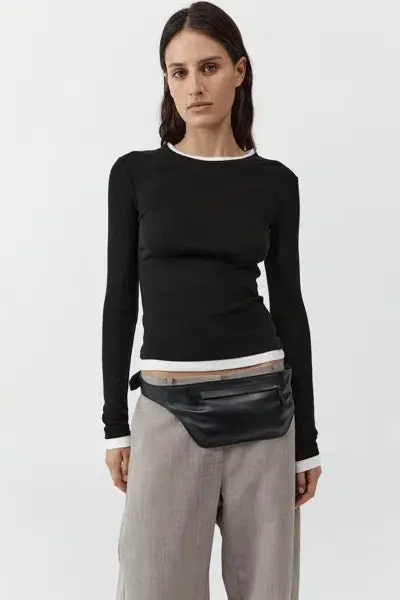 Organic Cotton Layered Long Sleeve Top- Black